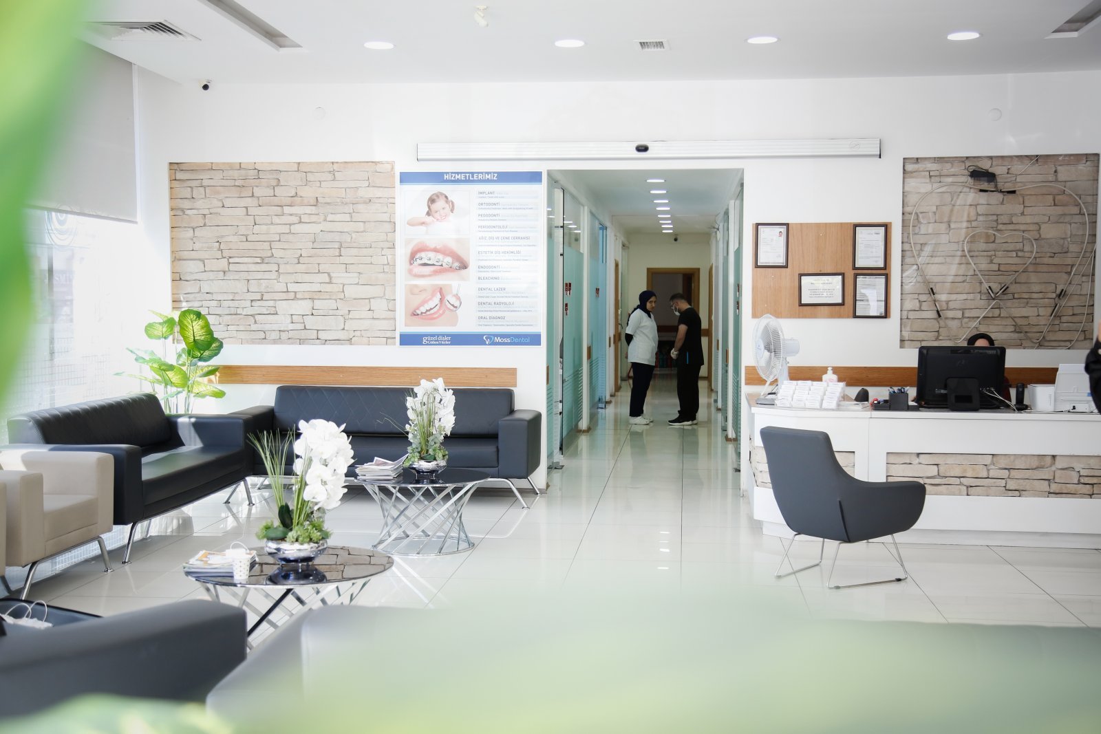 MossDental Ağız ve Diş Sağlığı Polikliniği’mizde, çocuk ve yetişkinler için ağız, diş ve çene sağlığı ile ilgili hastalıkların tanı ve tedavisinde, Estetik Diş Hekimliği, Protez, Ortodonti, İmplantoloji, Endodonti (Kanal Tedavisi), Periodontoloji (Diş Eti Hastalıkları), Pedodonti (Çocuk Diş Hekimliği) ile Ağız, Diş ve Çene Cerrahisi alanlarında konusunda uzman hekimlerle 2014 senesinden beri hizmet vermekteyiz.